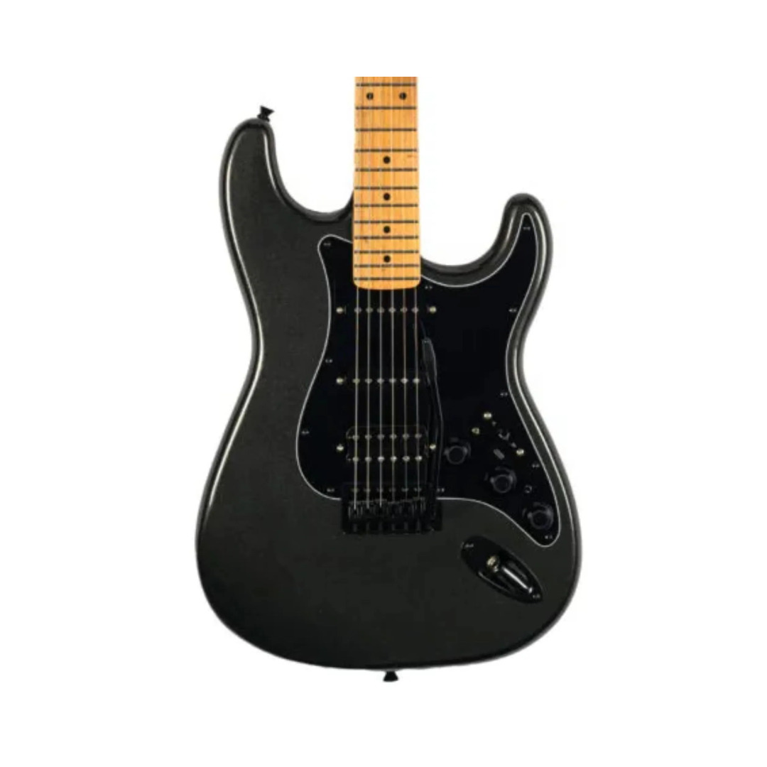 O hardware em ferragens cromadas traz robustez e estabilidade. A ponte flutuante de 6 parafusos com alavanca adiciona expressividade e variações sonoras. O escudo Pearloid complementa o visual sofisticado da guitarra.